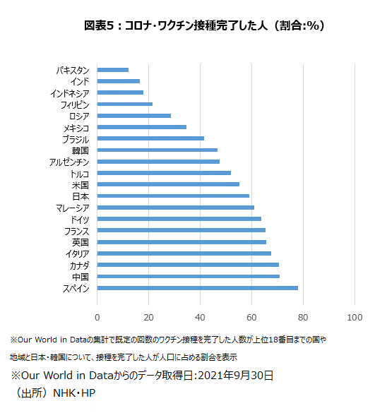 (日本の新型コロナワクチン接種完了した人の割合は9月末で59%。22日データで日米逆転)