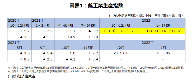 新型コロナウイルスの新たな変異株オミクロン型の今後の動向など、懸念材料もあるが、今のところ生産指数は、7~9月期の5四半期ぶり前期比低下の後、10~12月期、1~3月期と連続して、前期比上昇基調に戻る可能性が大きいだろう。