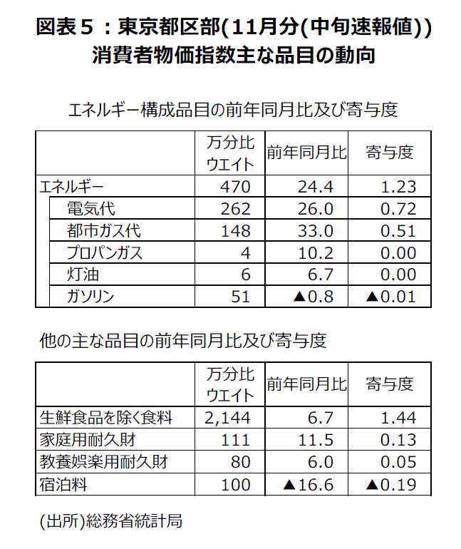 (11月東京都区部消費者物価指数・生鮮食品を除く総合40年7カ月ぶりの高い伸び率、伝わらないガソリンの下落)