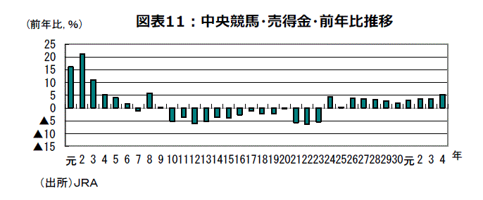 22年のJRA(日本中央競馬会)売得金は前年比+5.8%と、11年連続で前年比増加になった(図表11)。年末のG1レースは、12月26日開催の有馬記念の売得金は前年比+6.2%、ホープフルステークスの売得金は前年比+10.0%の増加だった。
