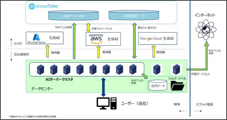 企業内部や特定の組織内部でのみアクセス可能なネットワーク接続(閉域接続)を利用して、Azure、AWS、Google Cloudの3大クラウドベンダーが提供するAIモデルをユーザーが自由に選択できます。