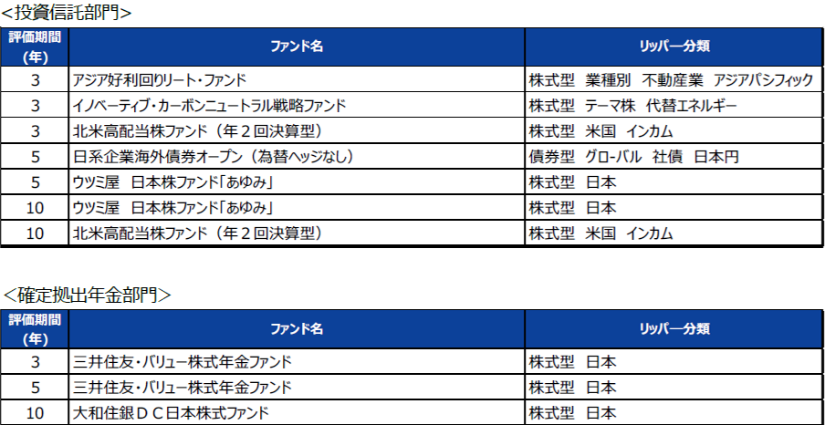 ■上記の評価は過去の一定期間の実績を分析したものであり、対象ファンドの将来の運用成果等を示唆あるいは保証するものではありません。