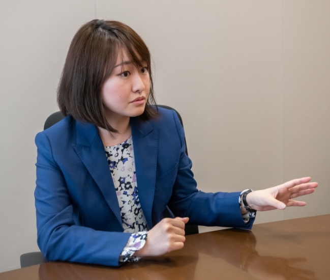 大学院では公共政策学を専攻しており、ある政策をテーマとして、現状の課題を抽出し、解決策の検討およびその効果予測を行い、最終的にステークホルダーに政策提案を行うという研究を行っていた。こうした学生時代の学びの中から、社会貢献につながる仕事に就きたいと考え入社。入社後は営業企画部へ配属。その後現在の所属部署の前身である商品部へ異動。株式会社三井住友銀行への出向を経て、2019年7月より現職。